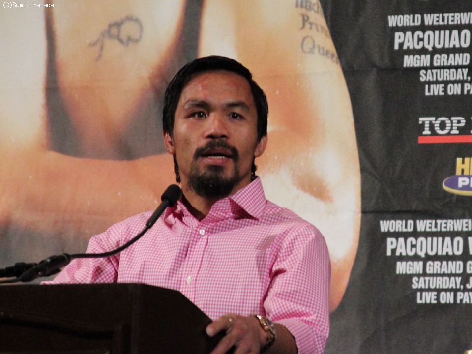 6月9日(日本時間10日)米国ネバダ州ラスベガスのMGMグランドガーデン・アリーナで行われたWBO世界ウェルター級タイトルマッチ、マニー・パッキャオ(比)対ティモシー・ブラッドリー(米)の試合後会見が行われた。