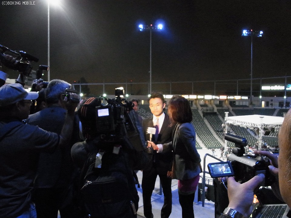 7月7日(日本時間8日)に米国カルフォルニア州カーソンで行われた、WBO・IBF世界スーパーバンタム級王座統一戦にみごと判定で勝利を飾ったノニト・ドネア(比/米)がリング上で現地テレビ局のインタビュー中、WBC同級名誉王者の西岡利晃(帝拳)の名前を出すと、西岡はリングへ上がり対戦を直訴した。