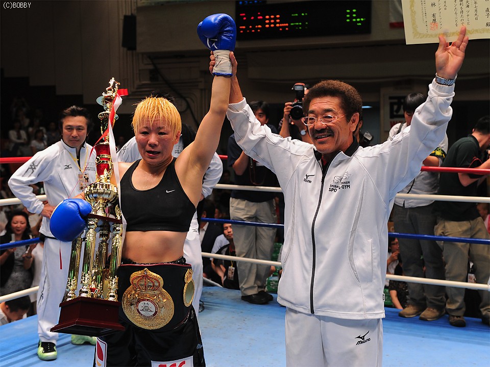 同席した具志堅会長は「(ベルトを獲る)予感はあった。山口は身体が重く100%の出来じゃなかったが、良い試合だった」と語り、ジム設立から17年、男女合わせて7度目の挑戦での世界王座獲得に感慨深げ。山口へのご褒美についても「(予備検診で)約束したからね。ロンドンでもどこでも行ってきて」と笑みをもらした。