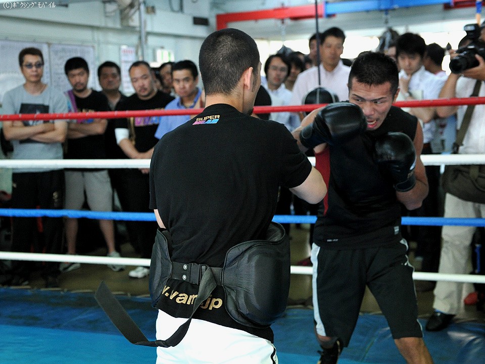 10日、7月16日に5度目の防衛戦に挑む、WBA世界スーパーフェザー級王者・内山高志が、自身の所属する都内のワタナベジムにて試合直前の練習を公開した。報道陣の多さが注目の一戦を物語っていた。