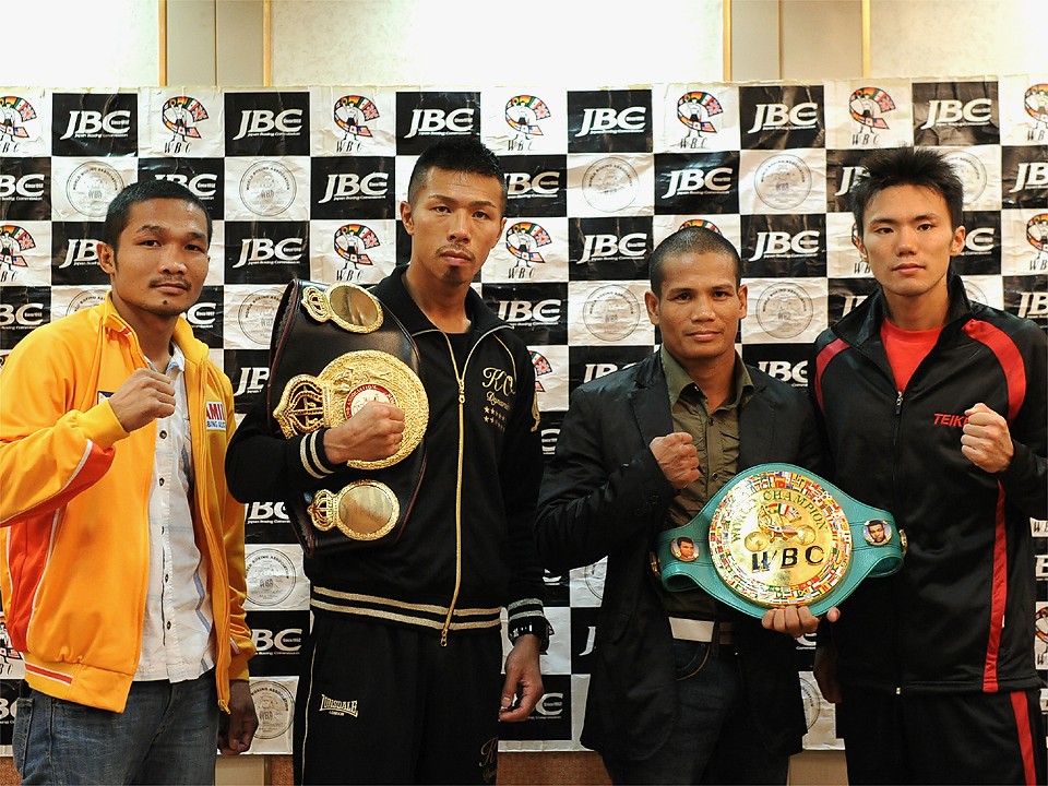 世界最高峰の座を賭け、春日部のリングで雌雄を決する"KO Dynamite"内山高志(ワタナベ)、"Hammer Fist"マイケル・ファレナス(比国)、"豪腕"ソニー・ボーイ・ハロ(比国)、"Super Sonic"五十嵐俊幸(帝拳)が一堂に会した!!