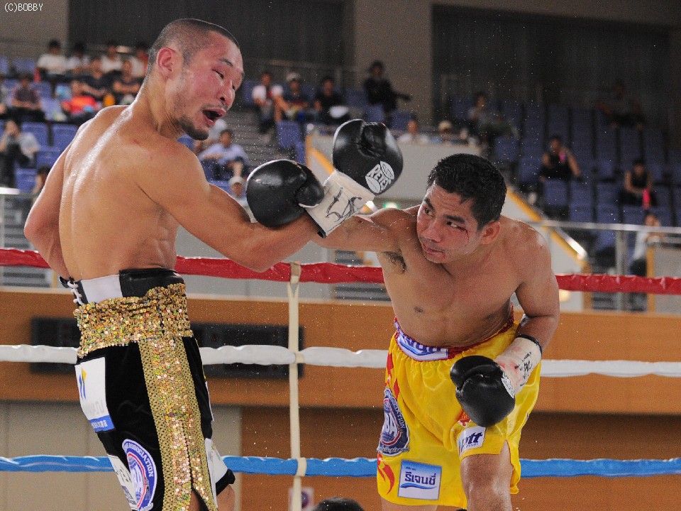 1日、大阪市内で行われたWBA世界スーパーフライ級タイトルマッチ。名城信男(六島)が引退を懸けて王者テーパリット・コーキャットジム(タイ)の持つベルトに挑んだ。
