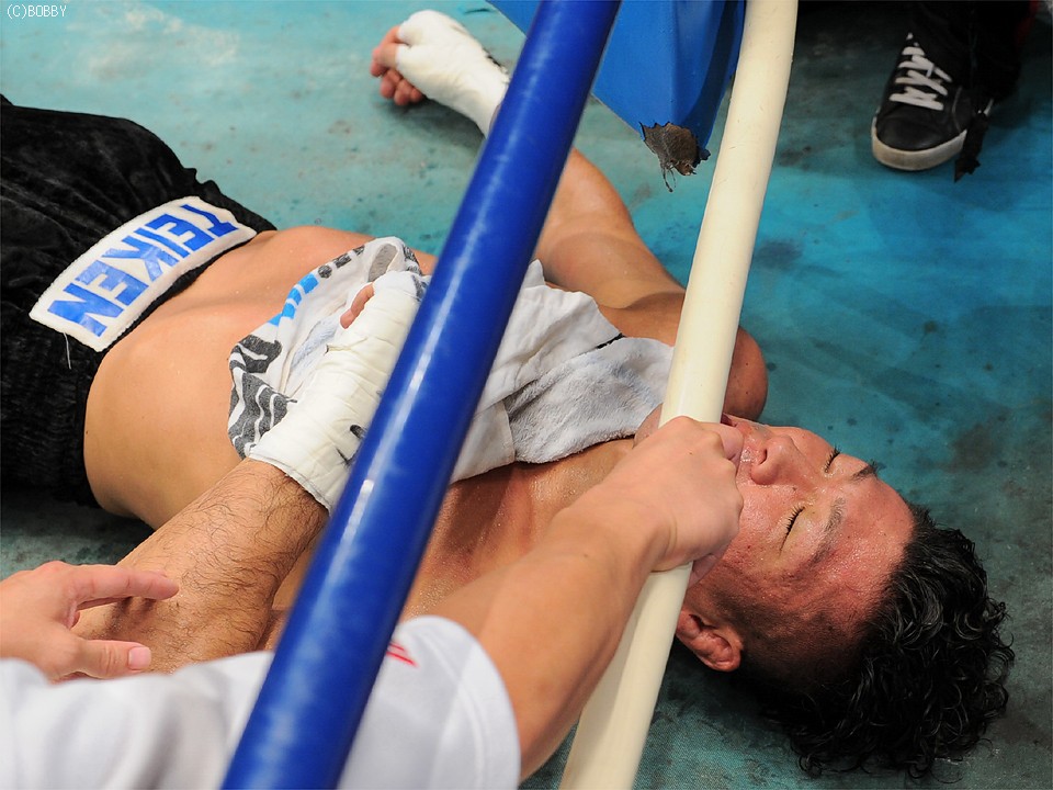 一方、ヒッティングで左目上を負傷するなど苦しい展開の清田だが6R、左ジャブで三浦を揺らすと、ここがチャンスと一気に攻め込みダウンを奪う。痛恨のダウンを喫した三浦は、膝を叩いて立ち上がり打撃戦に持ち込むも、引いた清田に右をかぶされキャンバスに沈んだ。