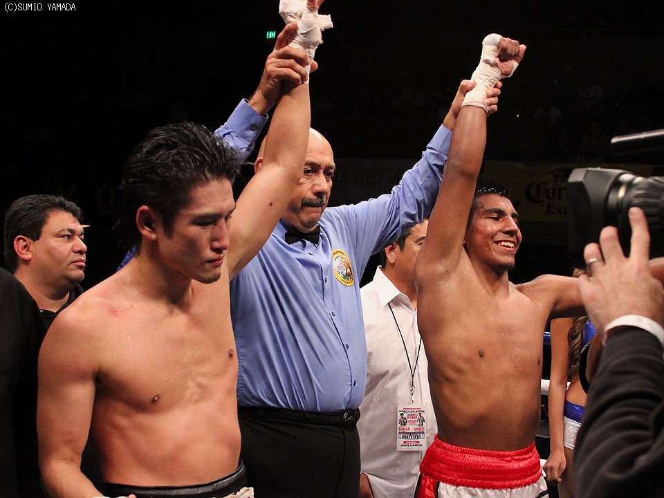 6日(日本時間7日)、米国カリフォルニア州サクラメントのメモリアル・オーデトリアムのリングに上がった亀海喜寛、ホルヘ・リナレスの帝拳勢が、試合後に激闘を振り返った。