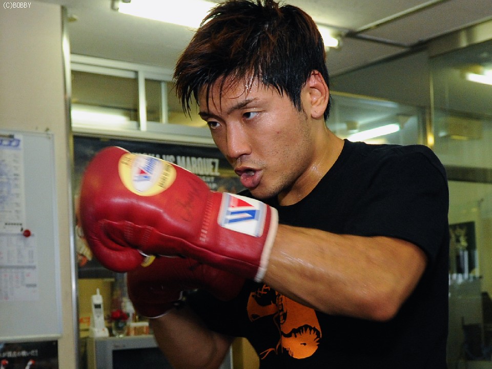 山中はミット打ちの後もサンドバッグ・パンチングボール・シャドー・ロープと精力的に動き、V2戦に向けて死角無しを集まった報道陣にアピールした。