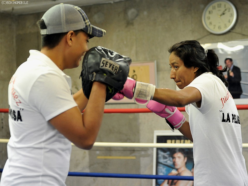 今月12日にWBA女子世界スーパーフライ級王者・山口直子に挑む、WBC同級11位フディス・ロドリゲス(メキシコ)の公開練習が9日、山口の所属する白井・具志堅スポーツジムで行われた。