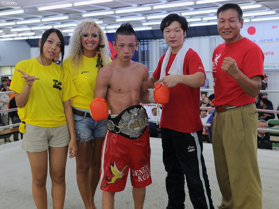 神戸サンボーホールで開催されたスーパーフライ級日本タイトル戦。王者・帝里木下(千里馬)に対し、一年ぶりに同タイトルに挑む大庭健司(FUKUOKA)の戦いは、サウスポーのチャンピオンが大きくリングを回り、ファイターの大庭が追いかける展開に。