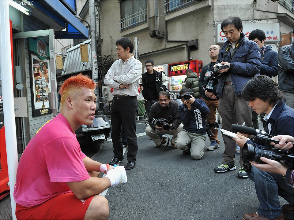 スパーリング前に萩森マネージャーと会見を開いた京太郎は「王座決定戦まで残り2週間、身体も仕上がってきました。最初の目標である日本人初のWBC世界ヘビー級ランクにも入り、2つめの目標である東洋タイトル獲得が近づいてきた。僕は常に"進化"している。2102年の締め括りなので、しっかり勝って新年を迎えたい!!」と決意を語った。