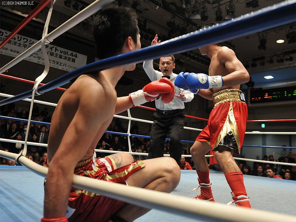 敵地で"スーパーフライ級アジア最強"の称号を獲得したビラヌエバが控え室で会見を開いた。「初回のダウンはストレートをもらった。それ以降のパンチは見えていたよ。エトウは左フックも強かったね。僕自身、ダウンをしたのは2度目。3ラウンドにエトウから奪ったダウンはストレートがアゴに当たっていた」と試合を振り返った。