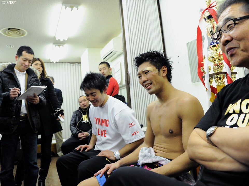 今後について渡辺会長は「1階級上げて淵上選手の東洋太平洋ミドル級王座挑戦も考えたが、今日の内容では…。日本タイトルを守っていくか考えます。倒して勝てたことは次に活かせる。柴田には期待しています!!」と2階級制覇に含みを見せると、最後に柴田は「倒すことで僕の本気を伝えたかった。大晦日に内山さん、河野さんの試合で多くを学び、そして勇気をもらった(笑)。これから少しでも先輩の背中に近づきたいですね」と更なる飛躍を誓った。