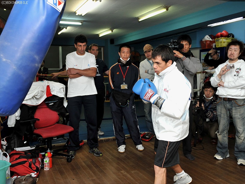 19日、都内・青木ジムにおいて、WBA世界フライ級王者ファン・カルロス・レベコ(亜)が報道陣を招き、公開練習を執り行った。