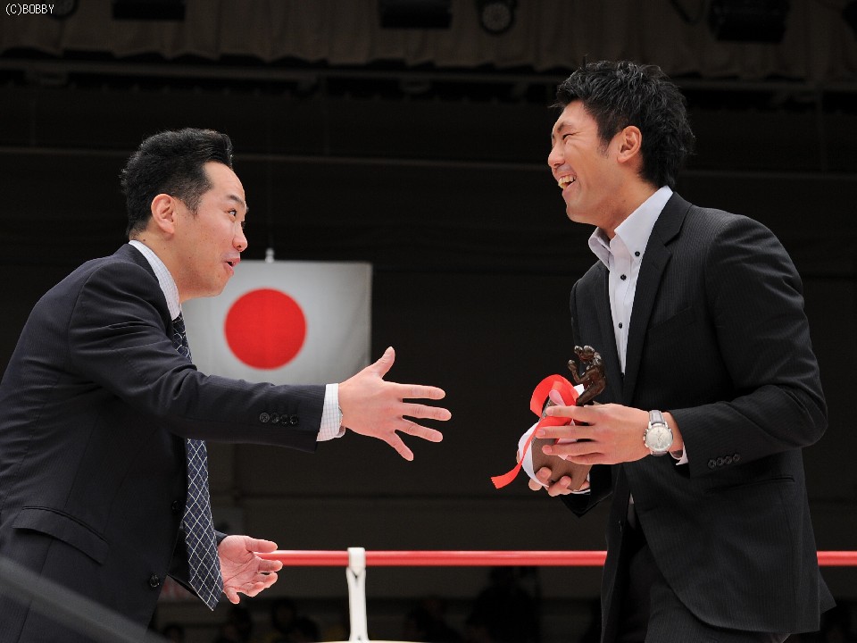 26日、後楽園ホールで開催された「第42回フェニックス・バトル」のリング上で、1月度月間賞の表彰式が執り行われた。
