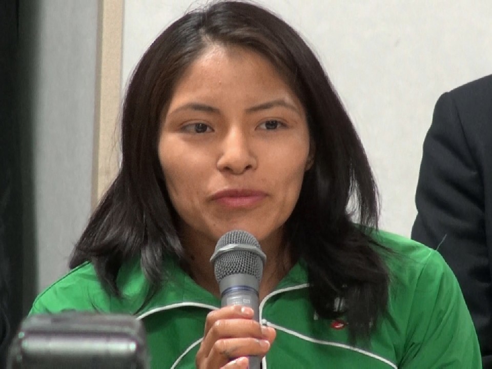 "緑のベルト"を争う柴田直子(ワールドS)とイベス・サモラ(メキシコ)が、調印式終了後に意気込みを語った。