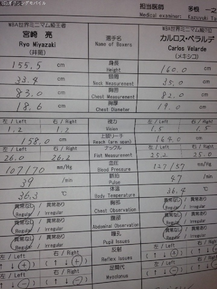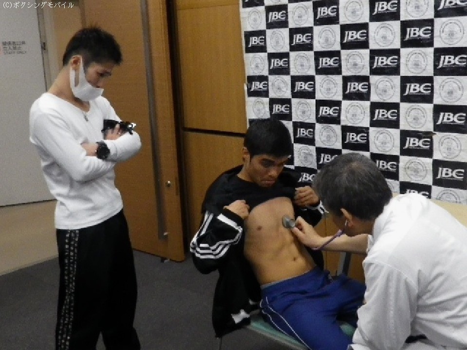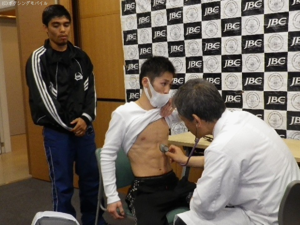 初防衛戦を二日後に控えた宮崎は、疲れた様子で予備検診を行った。