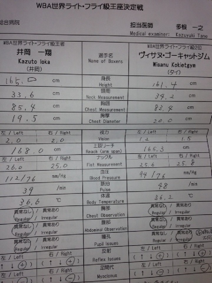 王者・井岡 一翔(井岡)VS挑戦者ウィサヌ・ゴーキャットジム(タイ)