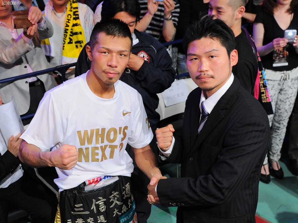 試合後、ゲスト解説を務めたWBC世界同級王者・三浦隆司(帝拳)と内山が握手を交わし、両王者は統一戦に意欲をみせた。