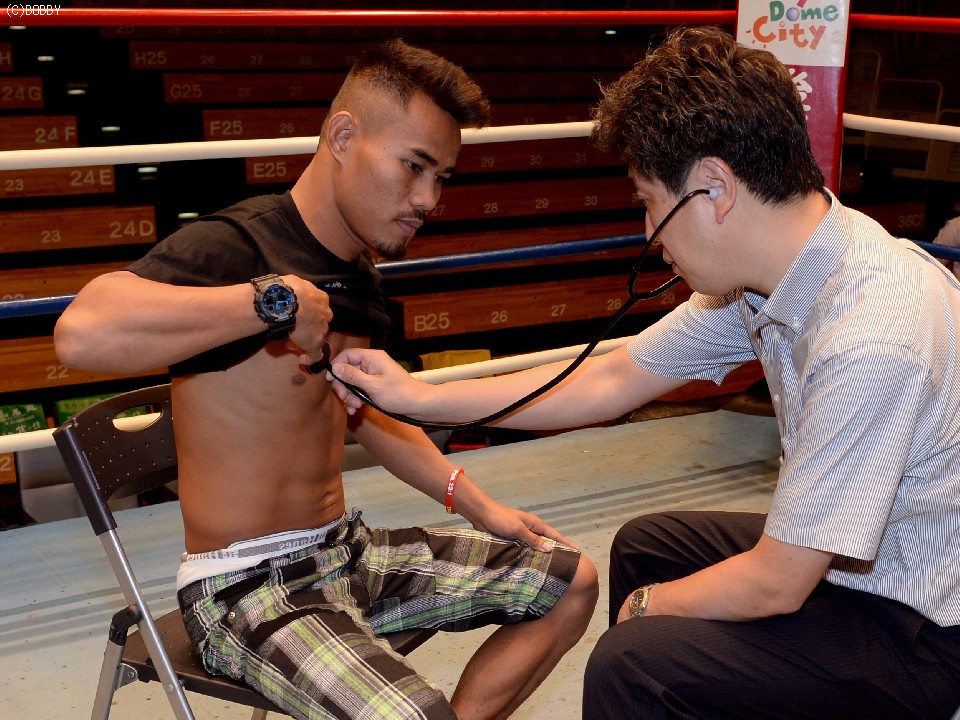 東京ビッグサイトで開催されるWBA世界バンタム級タイトルマッチを5日後に控えた18日、都内において予備検診が行われた。