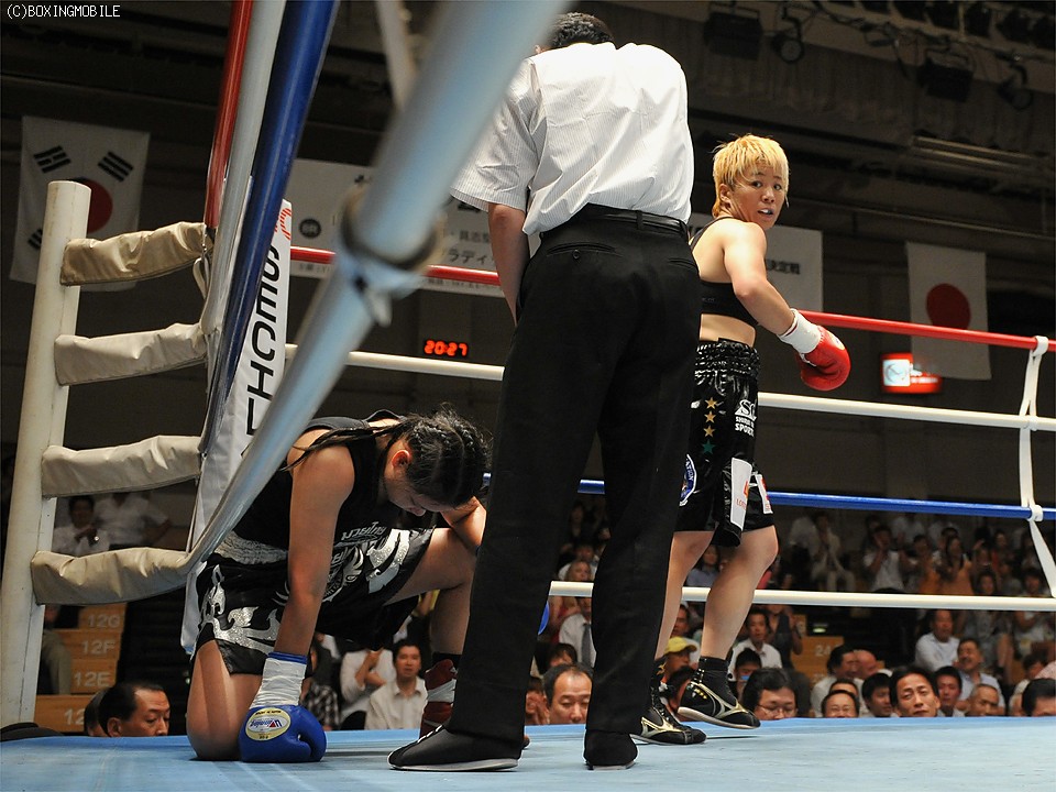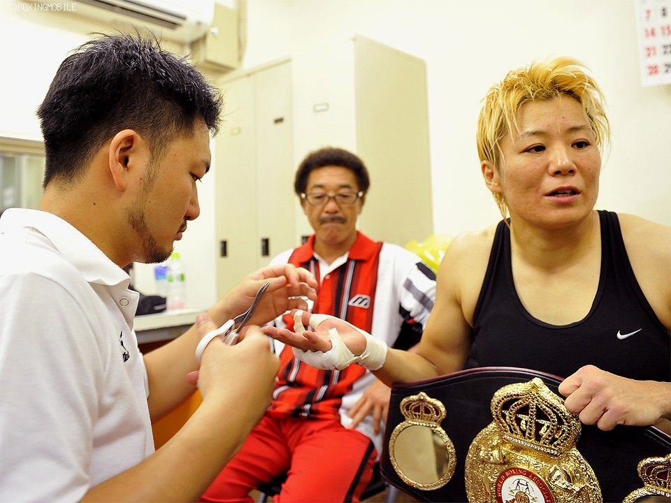 王座統一戦が暫定王者ダニエラ・ベルムデス(23=アルゼンチン)の来日が不可能となり、急遽ノーランカーのチュタポーン・プラディッサン(31=タイ)との防衛戦に、さらにWBAの承認が下りずノンタイトル戦となってしまったWBA世界スーパーフライ級王者・山口直子(35=白井・具志堅)。22日、後楽園ホールで行われた契約ウェイト8回戦では、鬱憤を晴らすかのようにタイ人選手に襲いかかった。