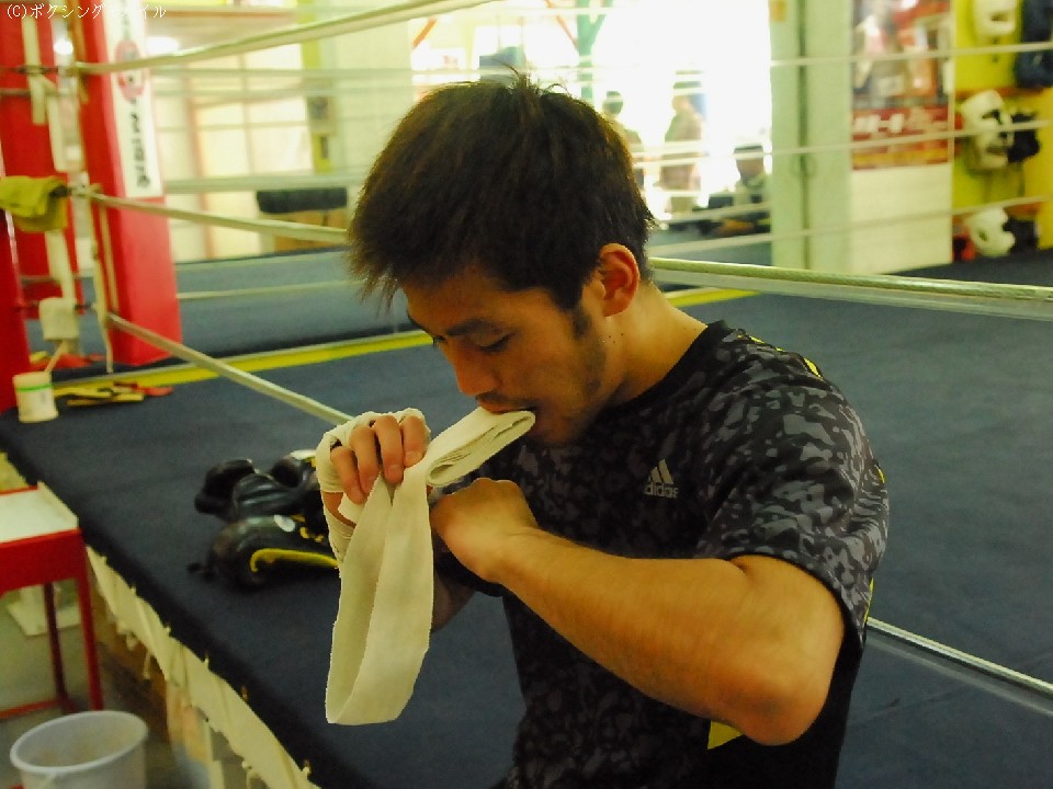 会見後、同門の石田匠(日本フライ級3位)を相手に気迫のこもったスパーリングを3Rこなし、サウナスーツに着替えるとサウナルームへ向かい、ロープ飛び、ミット打ちを合計約40分。大粒の汗を絞り出してこの日の練習を終えた。練習前の体重が49.8kgで練習後49.6kgと200gの減量。前回よりは順調な数字だが、計量を見守った井岡一法会長は「あれだけやってたった200か」と落胆した様子をみせた。