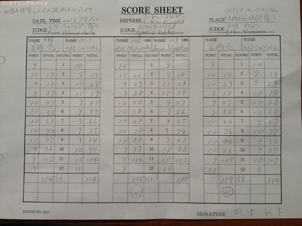 「5ラウンドぐらいから両目が(ふさがって)見えなくなり、相手もしつこいんでやりにくかったです」と試合を振り返ったWBA世界ミニマム級王者、宮崎亮は「喧嘩には負けたくなかったので、勝ててよかったです。判定を待ってる時は、ギリギリで勝ったと思っていました。でも、ポンサワンの方がしんどかったです。」と試合を振り返り「今日はかっこ悪かった。しょうもない試合をしてすいませんでした」と笑顔はなかった。