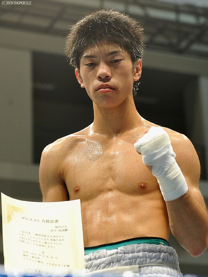 田中は8月のインターハイ後で準決勝敗退の前から、プロ転向を日本ボクシング連盟の山根明会長へ報告していた。テスト終了後、会見に応じた田中は「日本一、応援してもらえるボクサーになることが目標」と話し、プロとして「感謝の気持ちを忘れずにやっていきたい」と抱負を語った。