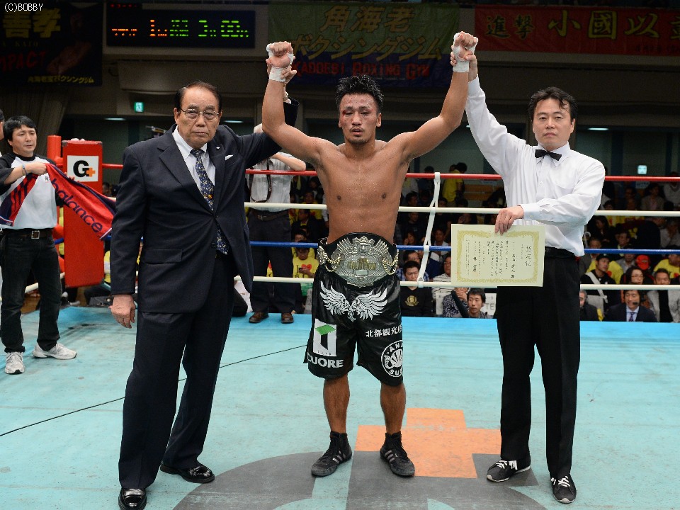 2度目の防衛を果たした高山だが、右目上に負った2センチほどの裂傷は思いのほか深そうだった。最後にダウンを喫したこともあり、笑顔はなかった。「あれはダウンじゃないですよ」とレフェリーの判断に不満を漏らしたあと、試合を振り返った。「ペースはコントロールできたかなと思うけれど、慎重すぎるところが自分の良いところであり悪いところ。でも、あのボクシングじゃあ倒せない。お客さんも退屈してしまいますよね」と反省の弁が口をついて出た。「腹を打ってガードを開けて上(顔面)を打とうと思ったけれど、腹を打たせてもらえませんでした」と表情を曇らせた。これで20戦19勝(7KO)1敗。