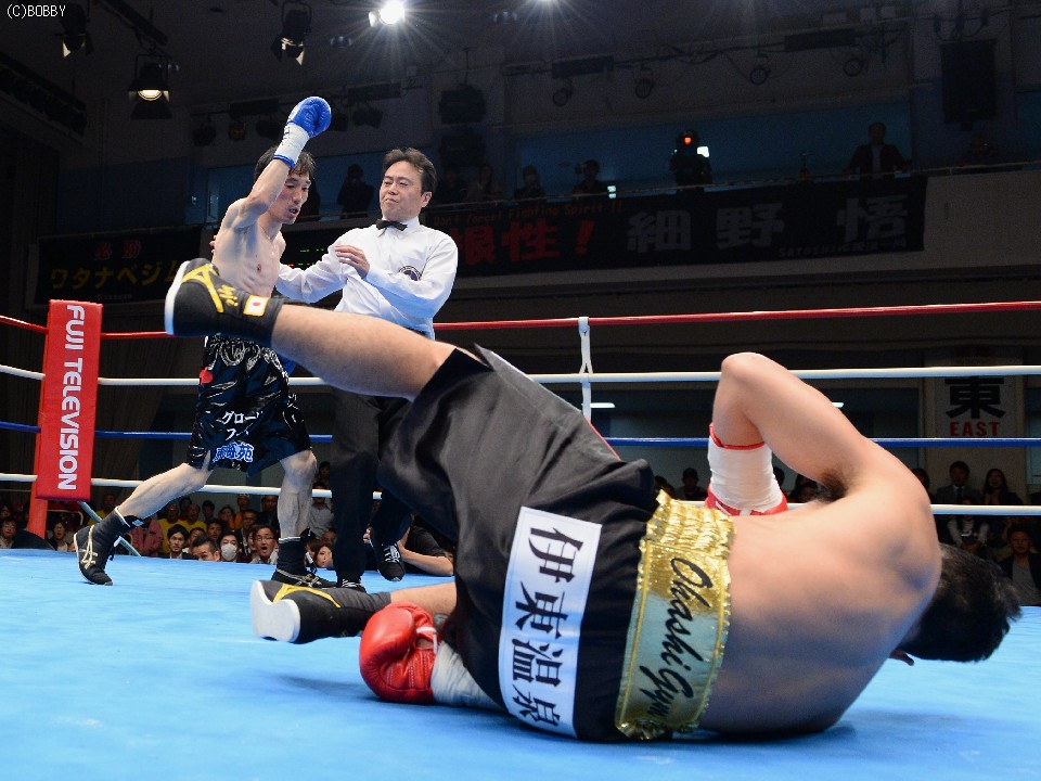 4回になると逆転を狙って右をスイングする原と、左ストレートを強振する國重という軽量級らしからぬ大味な展開となった。再び試合が動いたのは6回だった。原が右をヒットして挑戦者をのけ反らせ、ラウンド終盤には左フックと右で明白なダメージを与えたのだ。これを機に流れは原に傾いた。疲れとダメージもみえる國重は相手の攻撃を寸断するために執拗にホールドを繰り返し、7回に減点1を科された。その後も両者は体を密着させるシーンが目立ち、雑で荒れた試合になった。最終回には相手を投げ飛ばした國重に再び1点のペナルティが言い渡された。こうした相手の失点にも助けられ、原は95対92、96対91(二者)の3-0判定で辛うじて王座を守った。