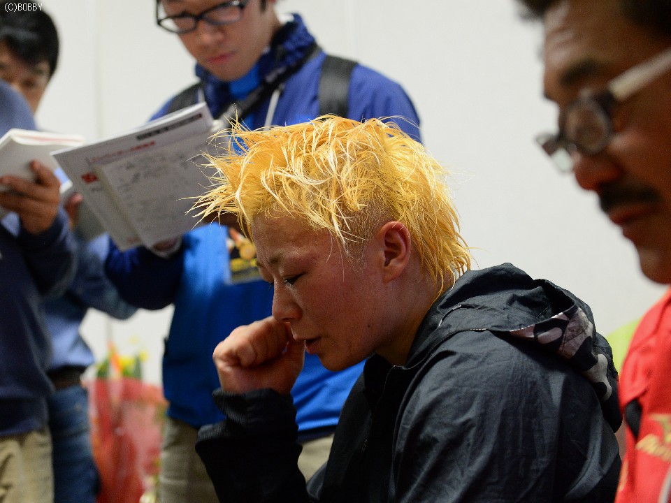 一方、敗れた山口は両目の周辺に腫れをつくりながらも会見に応じた。「完敗です。先にパンチをもらうことが多く、リズムがつかめませんでした。振りの大きいパンチだったけれど、(藤岡に)勇気があったので押されました」と、素直に敗北を受け入れた。相手については「パワーもあり気持ちも強い選手」と賛辞を送った。気丈に会見に応じていた山口だが、「調子がよかっただけに残念。ただ、女子ボクシングとしてはいい試合だったと思います」と話し、そこで初めて涙をみせた。使命感を抱えての試合だったことがうかがえる。今後に関しては「まだ力を出し切れていない」と話したことから、現役続行とみてよさそうだ。具志堅用高会長も「チャンスはもう一度あるよ。藤岡と暫定王者の勝者と対戦させたい」と愛弟子のチャンスづくりに奔走することを約束していた。18戦15勝(13KO)3敗。