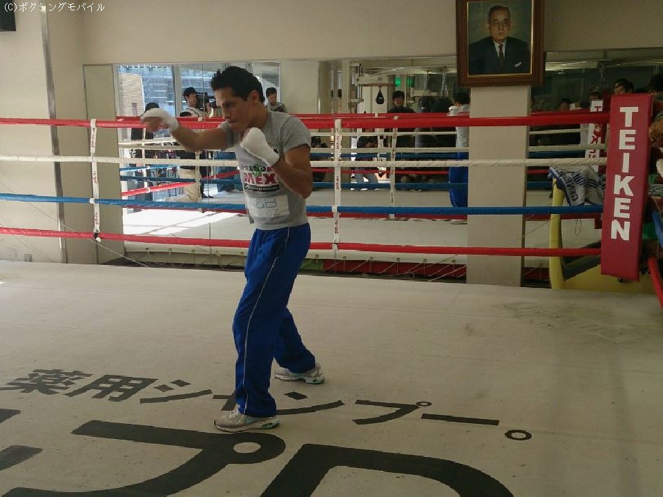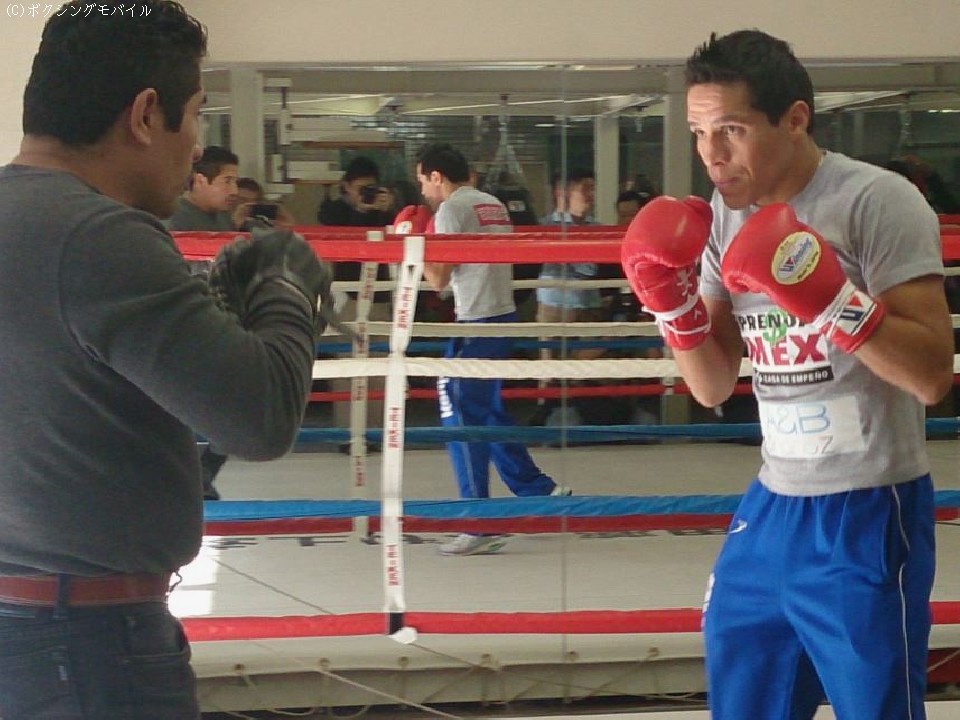 練習に先立ち行った会見でソーサは「時差ボケもなく体調もよくいい状態」とコンディションがいいことをアピール。メキシコでは走り込みを中心に調整してきたというソーサは、25日に来日した翌日に8ラウンドのスパーリングを行ったという。