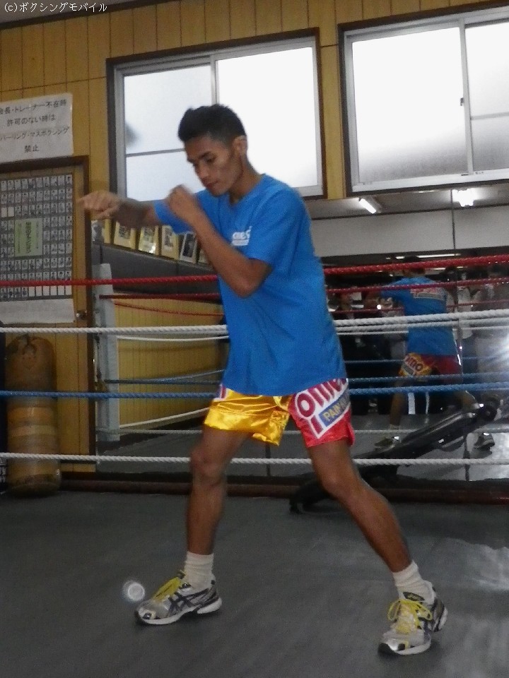 会見を終えたシルバーノはリングに上がり軽く体をほぐすと3Rのシャドーを披露。その後の動きを見守る報道陣にプロモーターのサミー・ヘリョアニ氏から「練習はこれで終わりだ。我々はこれで帰る」と告げられると10分ほどで公開練習を終えた。元々ライトフライ級を主戦場にし、ミニマム級での試合は初めてとあってやはり減量に苦しんでいるのか。