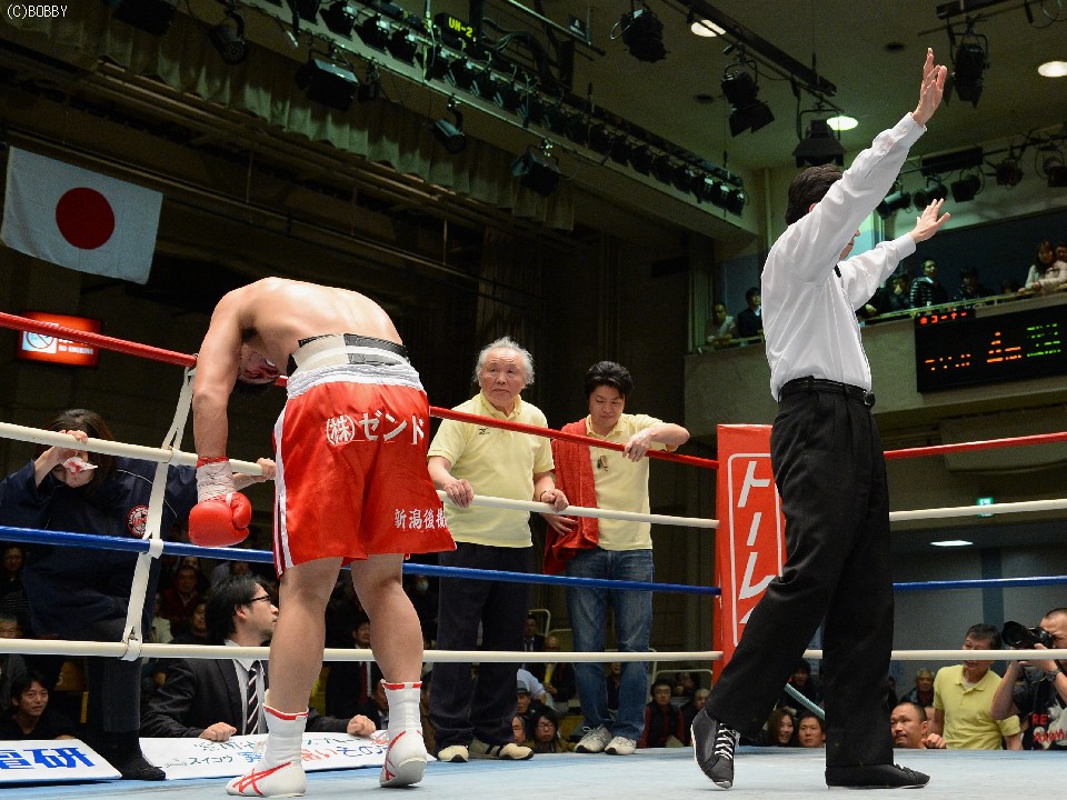 清田は、様子見は初回で十分と判断したのか、2Rに入ると左フック、右クロス、ボディと打ち分け猛攻を仕掛ける。これまで圧力を掛けていた松本もワンツーを返すがロープを背負ってしまい、3Rには清田の右で左目上をカット。この傷が4Rに深くなり、2度のドクターチェック後にレフェリーが試合を止めた。清田が4R37秒、負傷TKO勝利により再び東洋太平洋王座に就いた。
