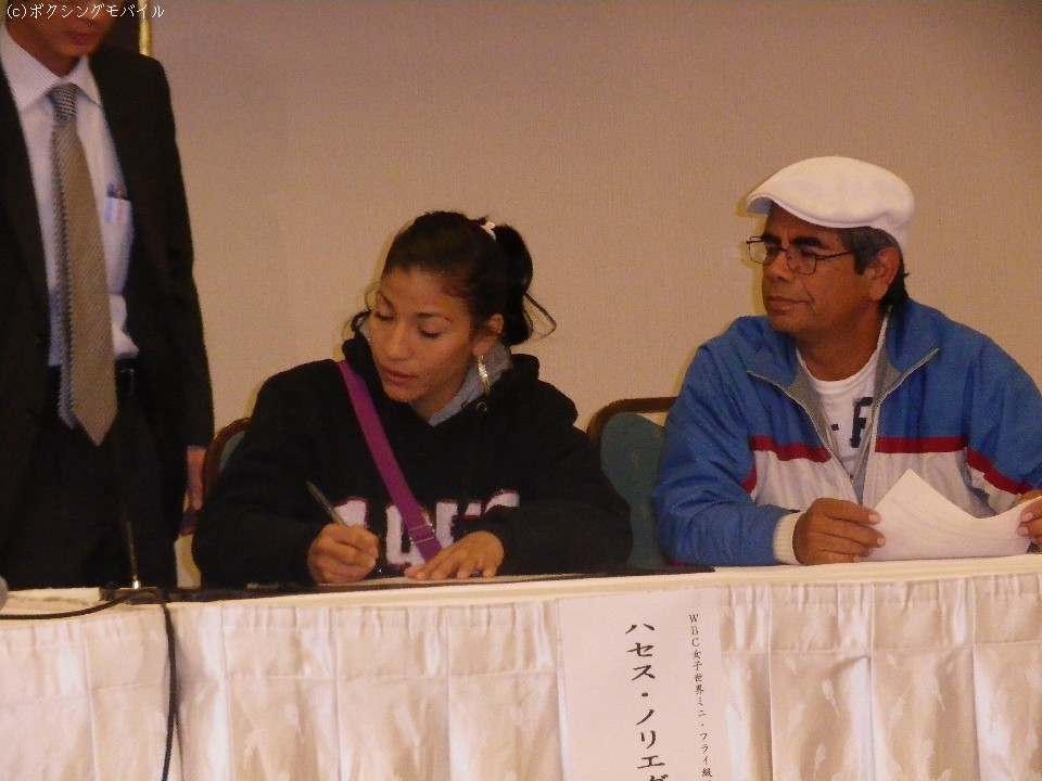こちらも笑顔で調印会場に現れたノリエガは「私には3歳の息子がいる、その子に勝利をプレゼントするために日本に来た。明日は必ず勝ってメキシコの我が息子にベルトを持って帰る」と意気込んだ。「日本は寒いが問題はない。コンディションも100%できている。いい試合をします」と、最後まで世界初挑戦を感じさせない余裕の表情を崩すことなく、会場を後にした。