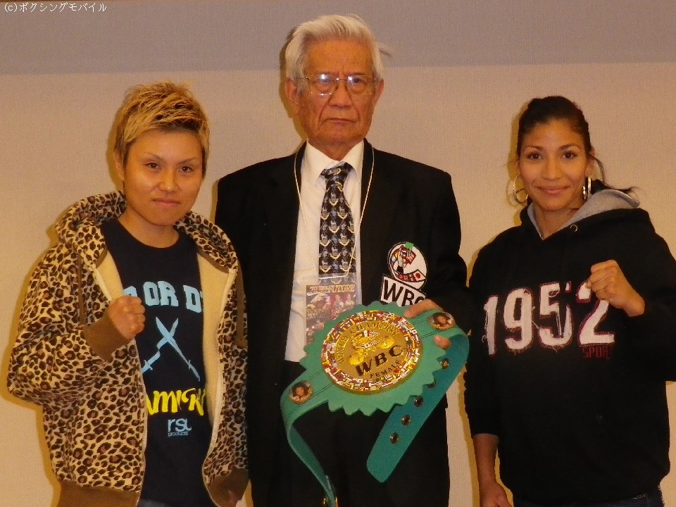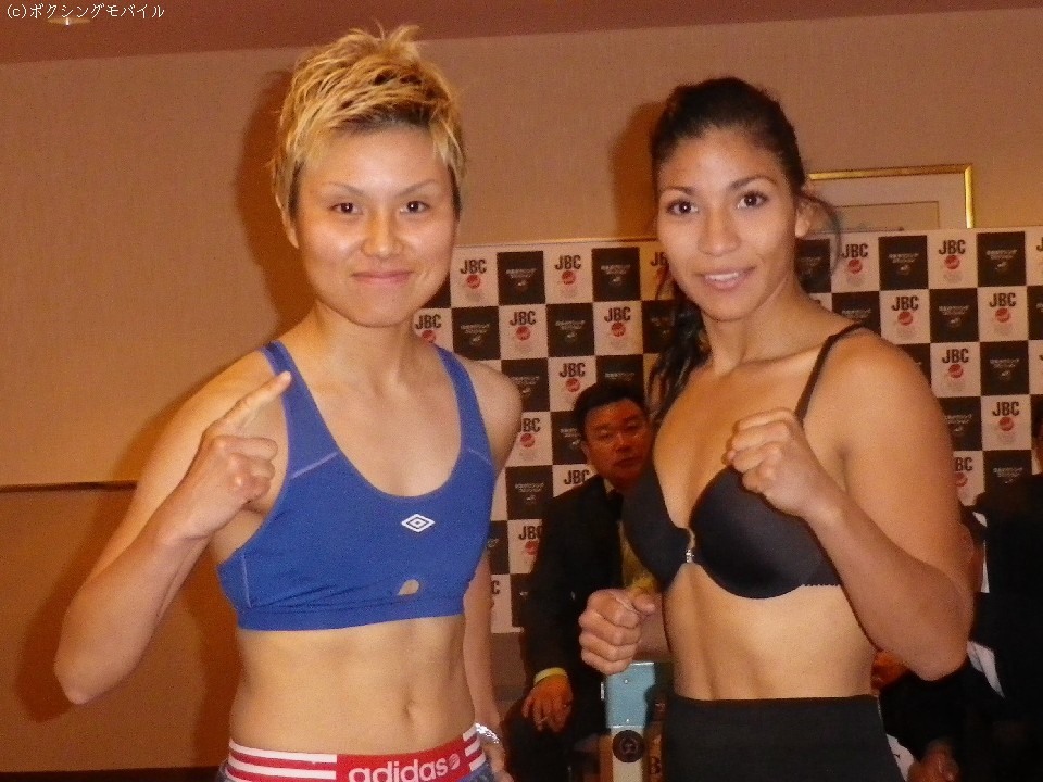 明日14日、大阪市内のアゼリア大正で開催されるWBC世界女子ミニフライ級王座決定戦に臨むWBC同級3位の安藤麻里(26=フュチュール)と同級4位のハセス・ノリエガ(23=メキシコ)が13日、大阪ベイタワーホテルで調印式と前日計量に臨んだ。