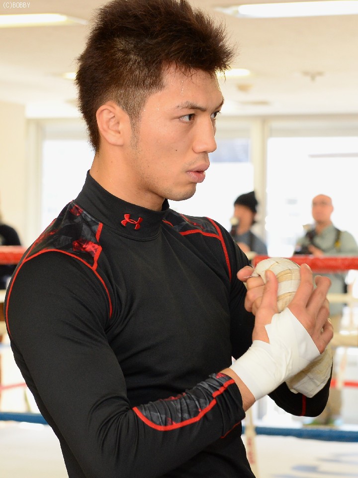 練習に先立ち行われた会見で「1戦目より2戦目の方が大きなものを得たと思っている。前回の試合であがった課題を克服する練習がしたい」と、11日未明に向かう米国ラスベガスでのトレーニングキャンプを待ちわびた。「今年すぐに世界タイトルに挑戦ということはないと思いますけど、いつでもいけるように毎日自分を高めていきたい」と、現在の心境を語った。