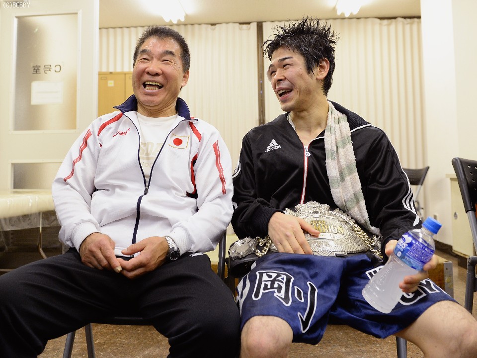 一方、初回の負傷で右目上を約3cm切った大平は、医務室で縫合後に会見を開いた。ベルトを見つめ、「紙一重の勝利だった。ジムにとっても久しぶりのタイトルで嬉しい」と安堵の表情となった大平は、今月21日に68歳の誕生日を迎える花形進会長に「いいプレゼントができました」と笑顔を見せた。花形会長も「最高のプレゼント。指示は動いて打つだけ。あとは全部本人任せだったが、よく動いてくれた」と話し、ジム6人目の日本王者誕生を喜んだ。