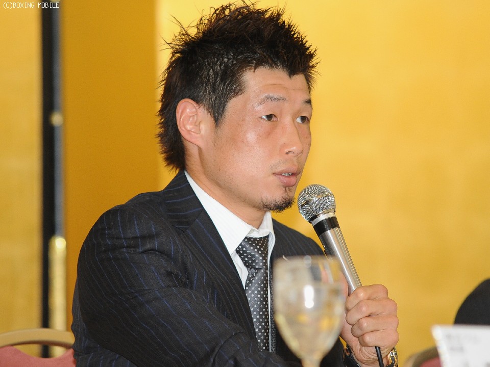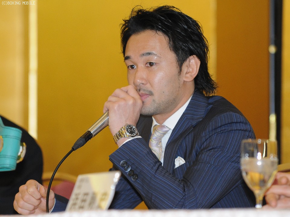 「自分がデビューした時からチャンピオンだった長谷川さんとダブル世界戦ができるのが嬉しい」と、三年ぶりに世界のリングにあがる長谷川穂積との共演を心待ちにした山中慎介。5連続KO勝利は意識しないとしながらも「KOを狙う」と話した山中は「インパクトのある勝ち方をしてラスベガスで試合ができるようにアピールしたい」と、今年の抱負を語った。