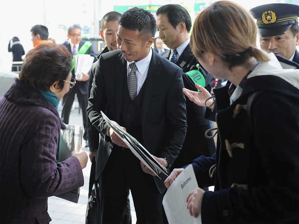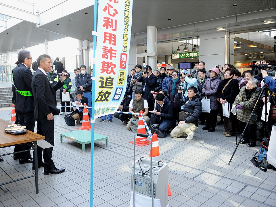 これまでも地元・埼玉県春日部市の親善大使や一日警察署長、講演活動などを精力的に行い、「夢をあきらめずに努力することの大切さ」を訴えてきた内山は、「年寄りを騙す、ずるい奴らは絶対に許せない」と怒りを口にした。「かつて、僕の母もこの詐欺で騙されそうになりました。僕が殴るわけにはいかないが、悪い奴が一人でもいなくなるよう、少しでも役に立ちたい」と語り、道行く人に注意を呼びかけた。