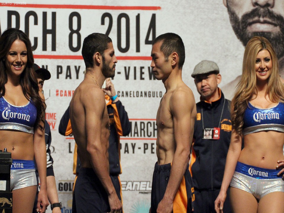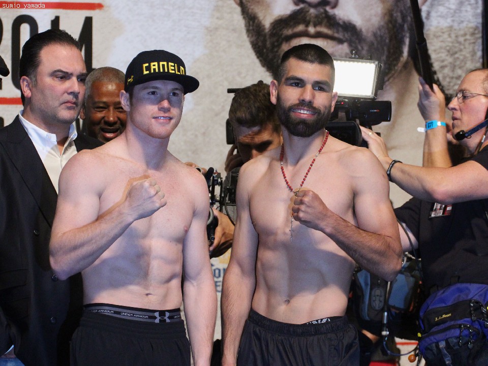 スーパーウェルター級の前WBA、WBC王者サウル・アルバレス(23=メキシコ)対元WBO暫定王者アルフレド・アングロ(31=メキシコ)のサバイバルマッチは8日(日本時間9日)、米国ネバダ州ラスベガスのMGMグランドガーデン・アリーナで行われる。試合前日の7日、両選手をはじめアンダーカードに出場するホルヘ・リナレス(28=帝拳)や荒川仁人(32=八王子中屋)らが計量に臨んだ。