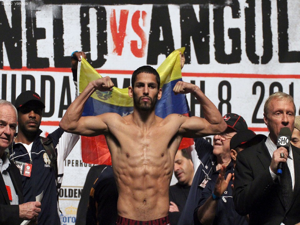 アルバレス対アングロはスーパーウェルター級リミットの154ポンド(約69.8キロ)で行われる予定だったが、直前になって155ポンド(約70.3キロ)の変更された。減量に苦しんだアルバレス側が10万ドル(約1020万円)の罰則金を払うことでアングロ側の合意を取り付けたとも伝えられる。計量ではアルバレスが155ポンド、アングロは154.5ポンド(約70.0キロ)だった。
