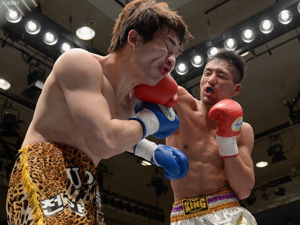 福本は1Rに右ストレートからの連打でダウンを喫したが、その後はワンツーと左ボディを軸に韓国王者のアン・ギョンジュン(22)を圧倒。2Rにワンツーの連打で倒し返すと3Rも下から上へと攻撃をつなげ、レフェリーストップを呼び込んだ。福本はこれで4戦3勝(3KO)1敗。韓国王者でありOPBFミドル級14位のアンを破ったことで、再起をはたすと同時にランク入りの期待もかかる。