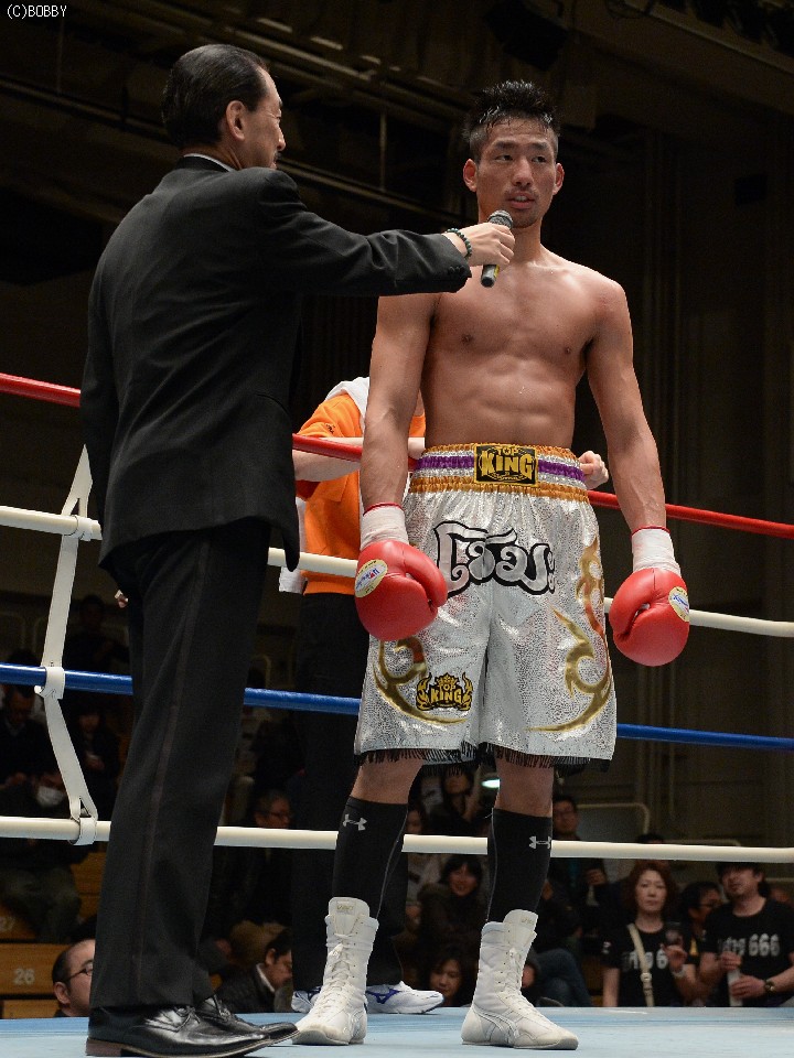 試合後の福本のコメント。「再起戦とあって出だしの体が堅くいい内容ではなかったが、初回のダウンで気持ちを切り替えられた。ディフェンスがまだ課題ですが、これからどんどんランクを上げていきます」。