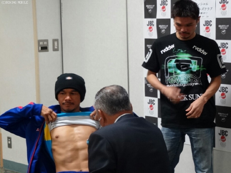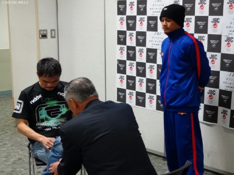今月26日(水)に後楽園ホールでWBA世界スーパーフライ級王座を争う同級1位(暫定王者)のデンカオセーン・カオウィチット(37=タイ)と同級2位の河野公平(33=ワタナベ)が24日、都内で予備検診に臨んだ。