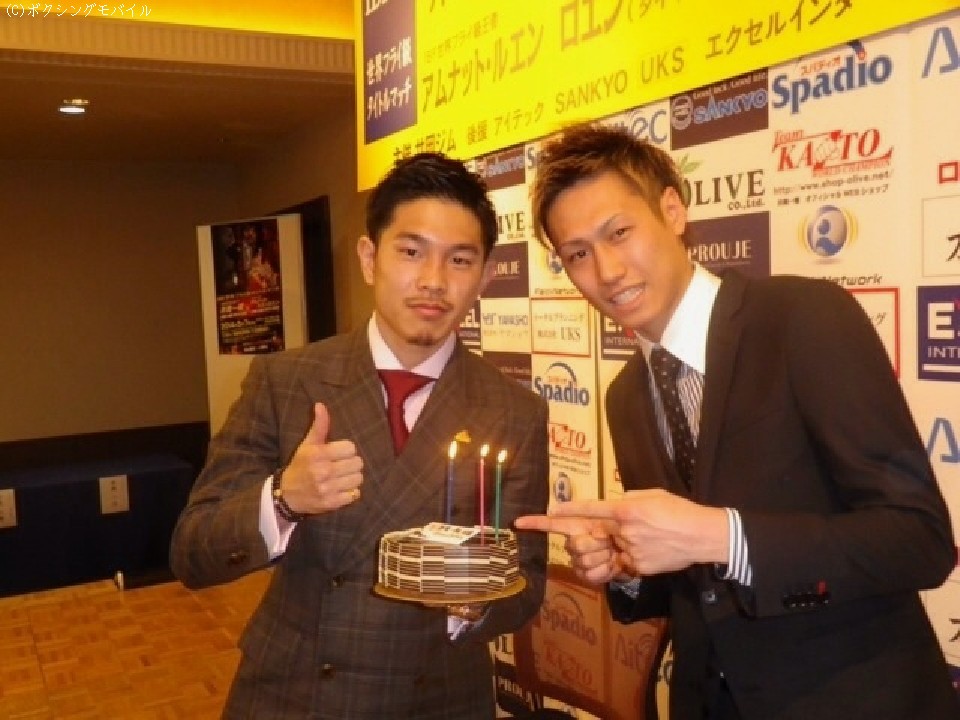 会見当日の24日は、井岡一翔の誕生日ということで、試合を放映するTBSからバースデーケーキのプレゼントが用意されていた。「誕生日にこういう会見を開いてもらうのも何かの運命ですね」と笑顔を見せた。