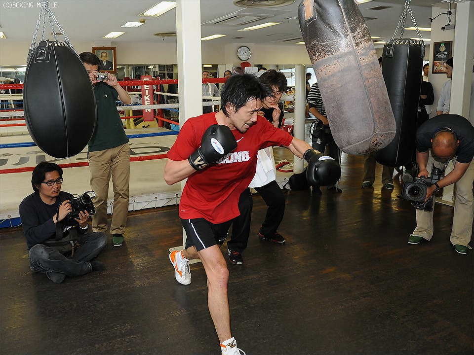 大阪城ホールの大舞台を1週間後に控えた16日、シュテファーヌ・ジャモエ(24=ベルギー)を相手に6度目の防衛戦に臨むWBC世界バンタム級王者、山中慎介(31=帝拳)が都内のジムで練習を報道陣に公開した。