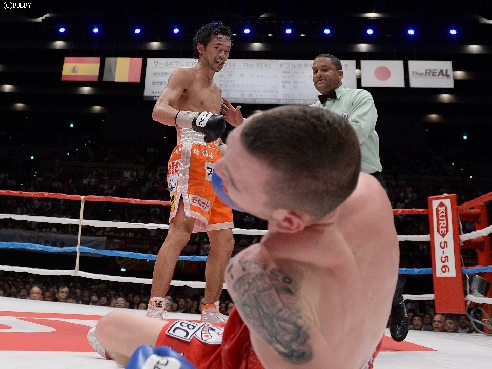 昨夜敗れた長谷川穂積(真正)に話が及ぶと「日本ボクシング界を引っ張ってきた人。自分も長谷川さんのような存在に近づきたい」と、コメントを残した。