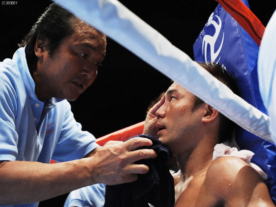 坂田のセコンドにつく大竹氏