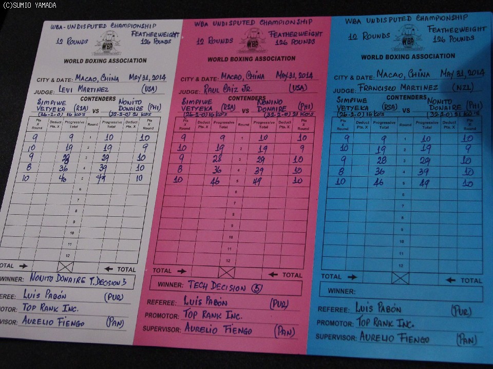 集計された5回を含む採点は、三者とも49対46でドネアが優勢だったため、当人にとっても不本意なかたちで史上7人目の5階級制覇王者が誕生した。