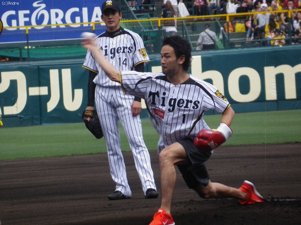 WBC世界バンタム級王者・山中慎介(31=帝拳)が22日、阪神甲子園球場で行われた阪神タイガースvs楽天イーグルス戦の始球式に登場。4万人の観客に大歓声で迎えられた。