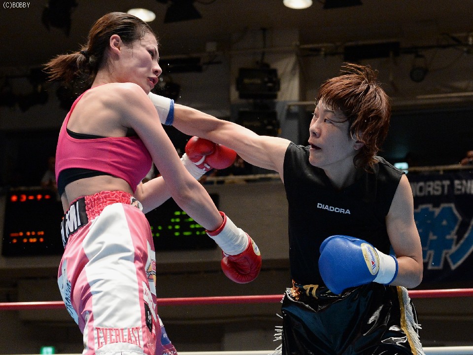 23日、蛇と共に計量に挑み話題となった高野人母美が、全勝記録更新を賭けて、OPBFスーパーフライ級1位のカイ・ジョンソンと激突。試合後の両者に話しを聞いた。