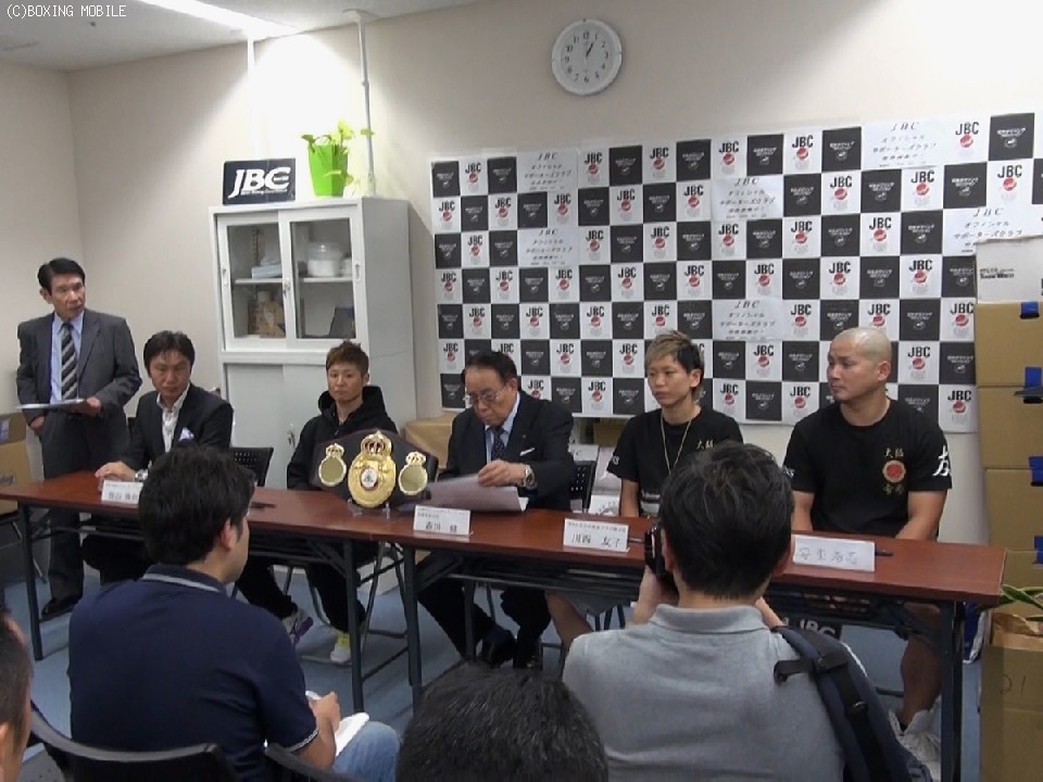 明日の七夕に後楽園ホールで行われる「WBA女子世界スーパーフライ級タイトルマッチ」の調印式と前日計量がJBC事務局で行われた。